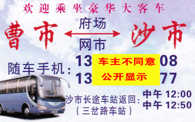 从沙市发往曹市班车途经及时间: