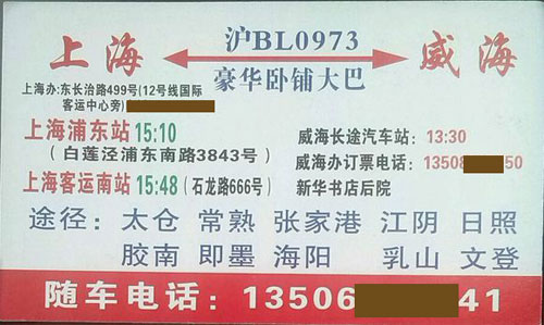 上海到威海长途客车在上海汽车站始发,目的到威海汽车站,上海到威海汽车途经地点及上海到威海发车时间,上海到威海大巴承揽团体大巴租赁包车,可以通过威海到上海汽车随车电话联系业务,威海到上海大巴票预订、威海到上海长途汽车查询,威海到上海多远?威海到上海大巴途经地点