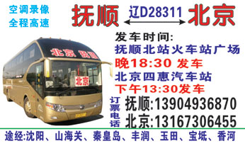 从 北京(四惠) 发往 抚顺(南站) 班车途经及时间:
