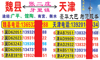 | 魏县汽车站 | 未知 | 早9:00 | 未知 |