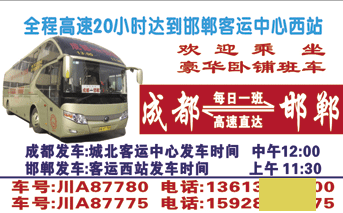 从 邯郸西站 发往 成都中心站 班车途经及时间: