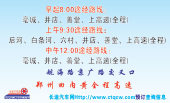 | 内黄 | 始发站 | 早上8:00/上午9:30/中午12:00 | 0 |